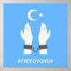 Este trabalho de arte apresenta as mãos acorrentadas e a frase #FREEUYGHUR.