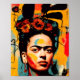 Apresentando uma peça de arte digital impressionante e vibrante inspirada pela icônica artista mexicana Frida Kahlo. Esta peça de arte digital abstrato está brilhando com cor, capturando a essência do estilo de assinatura de Kahlo e o uso ousado de matizes.