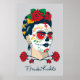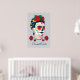 Frida Kahlo, o estilo surrealista da icônica artista mexicana foi derivado de sua obsessão com a morte e sua cultura. Este retrato vibrante mostra o icônico artista comemorando El Dia de los Muertos, um tradicional feriado mexicano. Aqui vemos uma ilustração colorida da beleza mexicana abraçando esta celebração cultural. Vestido em uma banda larga floral e vestindo a composição do crânio de açúcar, é claro para ver por que Frida permanece um ícone no mundo da arte e da moda. © 2019 Frida Kahlo Corporation. Todos os Direitos Reservados.