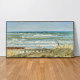 From Hornbæk beach by PS Kroyer. Scandinavian wall art inspired by Peder Severin Krøyer, bringing calm coastal light and cozy Nordic hygge vibes to your home. In the foreground, a flat beach towards which a fresh wind drives the waves. Frosty sunshine in March.