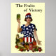 A nossa poster da Primeira Guerra Mundial foi criada por volta de 1919 para encorajar as mulheres a salvar comidas, cultivando as suas próprias colheitas e preservando e enlatando as suas colheitas de frutas e vegetais em casa. Chamada de As Frutas da Vitória, a poster foi produzida para a Comissão Nacional do Jardim da Guerra e publicada por F.M. Lupton, Publisher, Inc. Pelo artista Leonebel Jacobs, a pintura mostra uma jovem corajosa e nobre vestida de estrelas e listras segurando um vidro de verduras verdes picadas em uma mão enquanto com a outra aponta para um banquete de vegetais, fruta e jarras de comida preservada. Há maçãs, peras, tomate, milho doce e todo tipo de comidas saborosas na frente dela. Você pode adicionar seu próprio fundo de cor para se adequar à sua decoração e adicionar uma borda de cor simplesmente usando o botão personalizar.