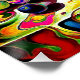 A.I.criou impressão de um surreal ainda vivo se rompe com frutas coloridas, incluindo maçãs, colocadas sobre um fundo psicodélico.