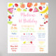 Bem-vindos aos convidados do seu partido com um sinal personalizado adorável. Enquadre o sinal e exiba-o numa mesa perto da entrada ou monte a espuma poster e mostre-a fora em um calcanhar. Este design bonito apresenta minhas frutas coloridas pintadas com a mão.