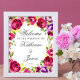Bem-vindos aos seus convidados de casamento com este elegante impressão floral cor-de-água rosa brilhante, decorado com lindas flores fuchsia e roxas. Uma magnífica tipografia acima dos rosas faz desta poster de entrada uma escolha perfeita para um casamento elegante no primavera ou verão.