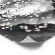 Esta peça captura a beleza serena de uma paisagem japonesa, misturando técnicas tradicionais de lavagem de tinta sumi-e com delicados pedaços de cor. Um Monte Fuji majestoso, com capas de neve, fica à distância, envolto em montanhas sujas. No primeiro plano, os ramos escuros e amarelados de uma árvore florescente de cereja estão em flor de cheio, com flores brancas e rosadas suaves acrescentando um contraste vibrante aos tons monocromáticos das cinzas da paisagem. A cena evoca um sentido de paz, tranquilidade, e a beleza transitória da natureza.