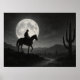 Be guided by the moonlight! This enchanting full moon print features a lone rider in a silver-lit desert, creating a magical and peaceful atmosphere for any room.