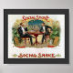 Anúncio de charuto de design da Vintage. Cena representada é de dois cavalheiros vestidos de tuxedos, sentados em uma mesa numa sala de charutos com a veranda aberta ao fundo.