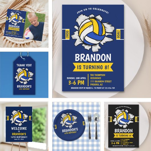 Have fun with our volleyball themed birthday design! Perfect for your little athlete, this vibrant invitation features a lively illustration of a volleyball, setting the stage for an exciting celebration. Ideal for boys and girls who love to play, this design promises a party full of energy, fun and lots of playtime. Get ready to throw a memorable birthday party!"