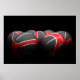 Grupo isolado de 7 bolas de basquete com cor vermelha, preta e prateada sobre fundo preto com luz escura