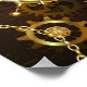 Fundo de madeira castanho com fundo marinho, cordilheira mecânica, volante antigo, âncora de ouro e diversas engrenagens de ouro e latão. Estilo Steampunk.