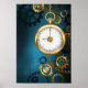 Turquesa, texturizada, fundo steampunk com latão e engrenagens douradas, chave prateada e relógio. Estilo Steampunk.