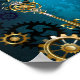 Turquesa, texturizada, fundo steampunk com latão e engrenagens douradas, chave prateada e relógio. Estilo Steampunk.