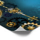 Poster Fundo de turquesa Steampun com engrenagens