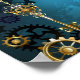 Turquesa, texturizada, fundo steampunk com latão e engrenagens douradas, chave prateada e relógio. Estilo Steampunk.