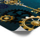 Turquesa, texturizada, fundo steampunk com latão e engrenagens douradas, chave prateada e relógio. Estilo Steampunk.