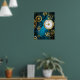 Poster Fundo de turquesa Steampun com engrenagens