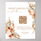 Crie uma forma na moda e memorável para os seus convidados contribuírem para a sua lua de mel com este PôsterSinal de Casamento de Código de Casamento do Fundo Russo Moderno de Numero QR. Apresentando um design moderno minimalista com flores terracottas e caligrafia elegante, esse sinal de bem-estar desejado é perfeito para casais que buscam uma maneira perfeita e elegante de coletar fundos digitalmente. Projetado para a noiva moderna, este símbolo editável permite que você adicione seu próprio código QR, fazer fácil para os hóspedes de contribuir para o seu fundo de lua de mel usando opções de pagamento digital. Ideal para um casamento boho, rústico, ou elegante, este sinal brilhante e ousado de poster vai melhorar a decoração do seu casamento enquanto serve um propósito prático. Quer você esteja planejando uma celebração temática boêmica ou um casamento moderno minimalista, este sinal combina elegância com função. Personalize-o com seus detalhes exclusivos para uma bela e útil adição ao seu grande dia. Perfeito para casais, ajustado bem com vários temas de casamento, de estilos florais a boêmicos.