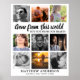 Um poster de lembrança para exibir em um funeral ou acordar de entes queridos, com 9 fotografias quadradas, a doce citação 'Saída deste mundo, mas não de nossos corações', seu nome e datas. O plano de fundo pode ser alterado para qualquer cor, de acordo com o tema do funeral.