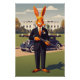 Funny American-themed poster in the style of the 1930s WPA national parks posters. These funny American posters feature an anthropomorphic rabbit on the White House lawn. 'The Don', an orange coloured anthropomorphic rabbit who has an uncanny resemblance to a certain US president, maybe?