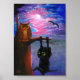 Póster Funny Black Cat Owl Fall Moon Creationarts