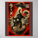 Poster Funny Black Cat Ramen Alien Ufo Abduction Japanese