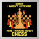 Perfect for anyone who’s ever zoned out mid-talk because they were strategizing their next Sicilian Defense. Whether you’re a casual player, a tournament competitor, or just obsessed with the 64 squares, this quote says it all: “Sorry I wasn’t listening, I was thinking about chess.”