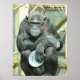 Um chimpanzé bonito que tem um CD, mas infelizmente não tem um CD player.