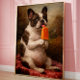 Bring instant personality to your space with this funny French bulldog wall art print, designed in a charming vintage oil painting style with a playful modern twist. Featuring an adorable Frenchie holding an orange popsicle, this artwork blends classic pet portrait elegance with lighthearted humor, making it a standout piece for anyone who loves quirky dog decor, whimsical wall art, and statement-making interiors.