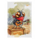 Set against soft outdoor washes of olive green and pale blue, the composition creates a rustic, storybook atmosphere filled with personality and playful rebellion. Perfect for music lovers, guitar enthusiasts, and anyone who appreciates quirky, imaginative art.