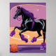 Um cavalo negro veste tênis roxos e joga basquete engraçada AI gerada pintura