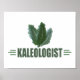 KALEOLOGISTA. Título humorístico para alguém que ama couve! Comer couve, especialmente para a saúde; couve cozinhar de uma receita favorita; um cozinheiro preparando couve num restaurante ou cozinheiro em casa; cultivar couve numa fazenda ou num jardim; vender couve no mercado do agricultor. Design apresenta um novo hetero de folhas gigantes do jardim. Outras posters engraçadas de comida e arte também estão disponíveis.