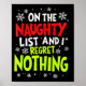 Poster Funny On The List Of Naughty And I Regret Nothing