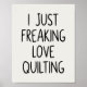 Poster Funny Quilting Love Saying Quilters Black White