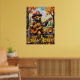 Este charmoso trabalho de arte apresenta um urso vestido de bombeiro, cheio de capacete e óculos de sol, tocando um violão acústico enquanto sentado numa cerca de madeira russa. O fundo mostra folhas coloridas do outono nas árvores e espalhadas no chão, criando uma queda vibrante. Um pote de mel se senta num posto ao lado dele. A pintura usa pinceladas grossas, texturizadas, dando uma sensação caprichosa e entusiasmante, com "Love My Honey" escrito abaixo.