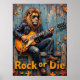 Esta pintura impressionante captura um leão majestoso, adornada com óculos de sol e uma jaqueta de couro, colocando seu "hino verde" em um violão elétrico. Está empoleirado com confiança numa borda de madeira, rodeada por folhas de outono dispersas e por um fundo de madeira aflitos. O uso de pinceladas ousadas e texturizadas pelo artista enfatiza a energia bruta da cena e a atitude de "Rock or Die", dando vida a este concerto inesperado.