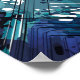Um trabalho de arte abstrato digital que combina tons de azul, lacre e marinho com placas de preto e branco. Linhas paralelas diagonais intersetam no centro, sobrepostas com manchas irregulares em forma de tinta e padrões quadrados sutis. A composição evoca uma fusão de precisão geométrica e camuflagem inspirada no oceano, criando um sentido de profundidade e movimento dinâmico.