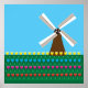 Um moinho de vento entre flores amarelas vermelhas e cor-de-rosa das tulipas. Esta design parece realmente eficaz nestes Poster