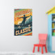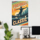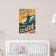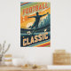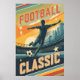 Arte de futebol retrô com jogador em ação dinâmica. Estilo art déco com cores vibrantes e tipografia retrô. Perfeito para decoração esportiva, bares e fãs de futebol. Design nostálgico que celebra o belo jogo com estética clássica dos anos 1950, transmitindo paixão e glória do futebol.