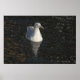 Uma imagem de uma gaivota branca e cinza que desfruta de uma natação lúcida no porto.
