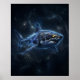 A powerful galactic shark moves through a deep cosmic abyss, its sleek form defined by dark space textures and glowing nebula streaks. Subtle light traces its edges, enhancing its speed and intensity as it cuts through the darkness. Surrounded by distant glowing forms and layered depth, the scene feels immersive and mysterious. This striking artwork captures strength, motion, and dominance, making it perfect for bold interiors, modern decor, and collectors of high-impact, ocean-inspired cosmic art.