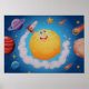 Lua com rosto feliz no fundo do tema da galáxia espacial
