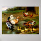 Pintura a óleo de frangos, patos e patins na fazenda do século XIX.