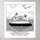 Um caçador jogando xadrez em um barco com um cachorro e dizendo, "Um cão de caça você é. Essa é a quinta vez consecutiva que você caiu pelo Gambit do Rei."