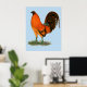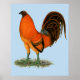 A cor vermelha do galo gama tem um tom vermelho alaranjado feroz, contrastando com preto na cauda e asas. Encomendado por Kenny Troiano por seu livro sobre cores de galinha de caça.