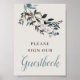 Adicione os detalhes finais às decorações do seu dia com este sinal que diz "por favor, assine nosso livro de presentes". Ficaria ótimo emoldurado ao lado do seu livro de presentes de casamento e certifique-se de verificar o livro de presentes correspondente oferecido nesta coleção. Este design combina com a coleção de casamento "Garden Crest" em Ovos.