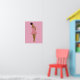 Linda abstrato sem rosto vestindo um vestido bonito de padrão rosa, não vestindo calçados e adorável sopras afro, fundo rosa dando a esta poster uma sensação cinzenta quente; excelente para jovem e até adulto.