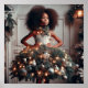 A imagem mostra uma garotinha vestida com uma fantasia única e criativa de árvore de Natal. Especificamente, ela está vestindo um vestido branco feito de galhos verdes, enfeitado com Enfeites de natal brancos e prateados. Adicionando um toque lúdico, seu cabelo está estilizado para uma grande distância. A menina é apresentada como o ponto focal e, ao seu redor, a sala é decolada nas decorações temidas do Natal. O ambiente e a sua roupa contribuem juntos para criar uma atmosfera festiva e envolvente que incorpora o espírito da época de Natal.