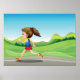 Uma garota correndo em uma pista no campo. Esta design parece realmente eficaz nestes Poster