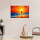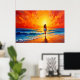 Poster Garota da praia do pôr do sol caminha pelo oceano