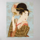 Poster Garota Geisha Japonesa Antiga em Kimono com Leque